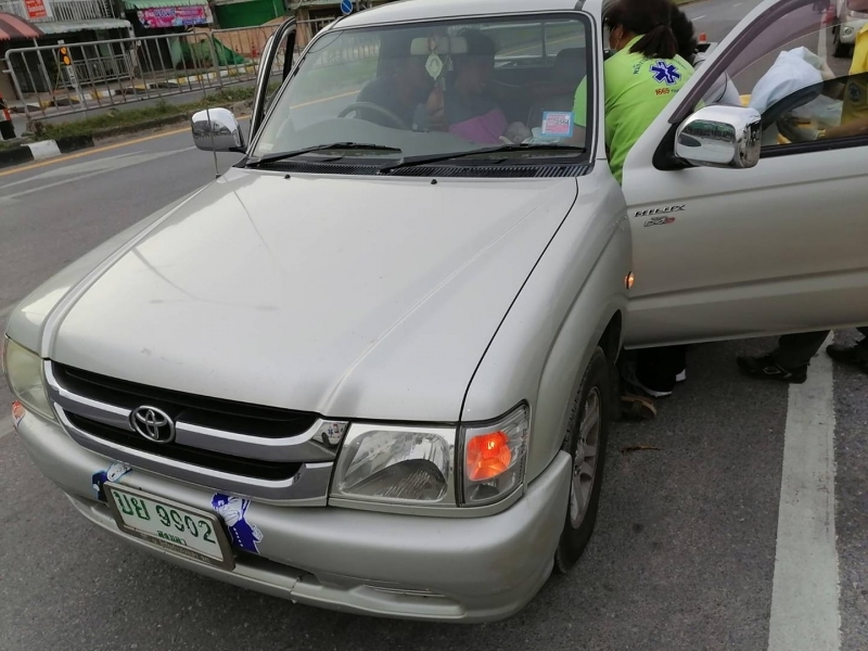 เจ้าหน้าที่จึงช่วยเหลือทำคลอดฉุกเฉินให้บนรถกระบะ ป้ายทะเบียน บย 9902 สงขลา (รถยนต์ส่วนตัว)
