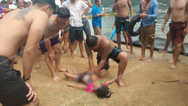 ในที่เกิดเหตุพบประชาชนกำลังมุงดูจำนวนมาก ต่างลุ้นให้ช่วยเด็กขึ้นมาอย่างปลอดภัย โดยมีพลเมืองดี 7 คน ที่เป็นนักท่องเที่ยวกำลังดำค้นหาร่างผู้สูญหาย ซึ่งทราบว่าผู้สูญหายเป็นเด็กหญิง แต่ผ่านไปประมาณ 10 นาที ก็ไม่สามารถดำค้นหาเจอ ทางกู้ชีพขุนรัตนาวุธ จึงประสานขอกำลังสนับสนุนจากชุดประดำน้ำสายธารร่วมค้นหา แต่ระหว่างรอชุดประดาน้ำ พลเมืองดีก็ไม่ลดความพยายาม หลังจากขึ้นมานั่งพักได้พักหนึ่ง มีประชาชนที่ยืนมุงดูมองเห็นเหมือนมีฟองอากาศลอยขึ้นมาบนผิวน้ำ ห่างจากฝั่งประมาณ 10 กว่าเมตร จึงลงน้ำเรียงหน้ากระดานดำค้นหาอีกครั้ง